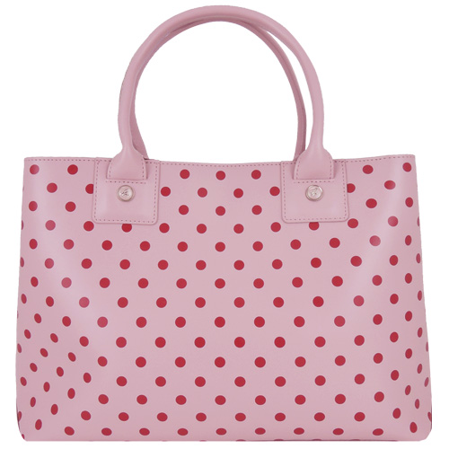 agnes b. New York 點點全真皮肩背公事/托特包(小/粉紅)
